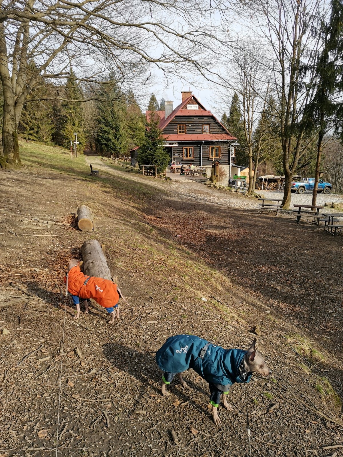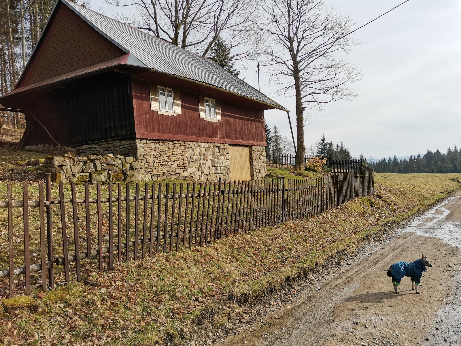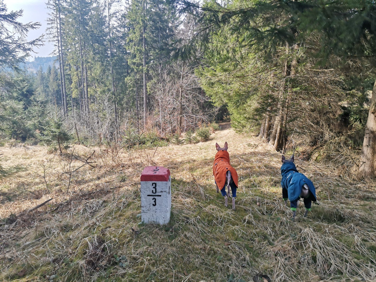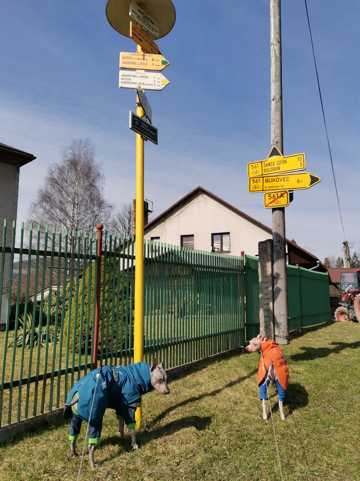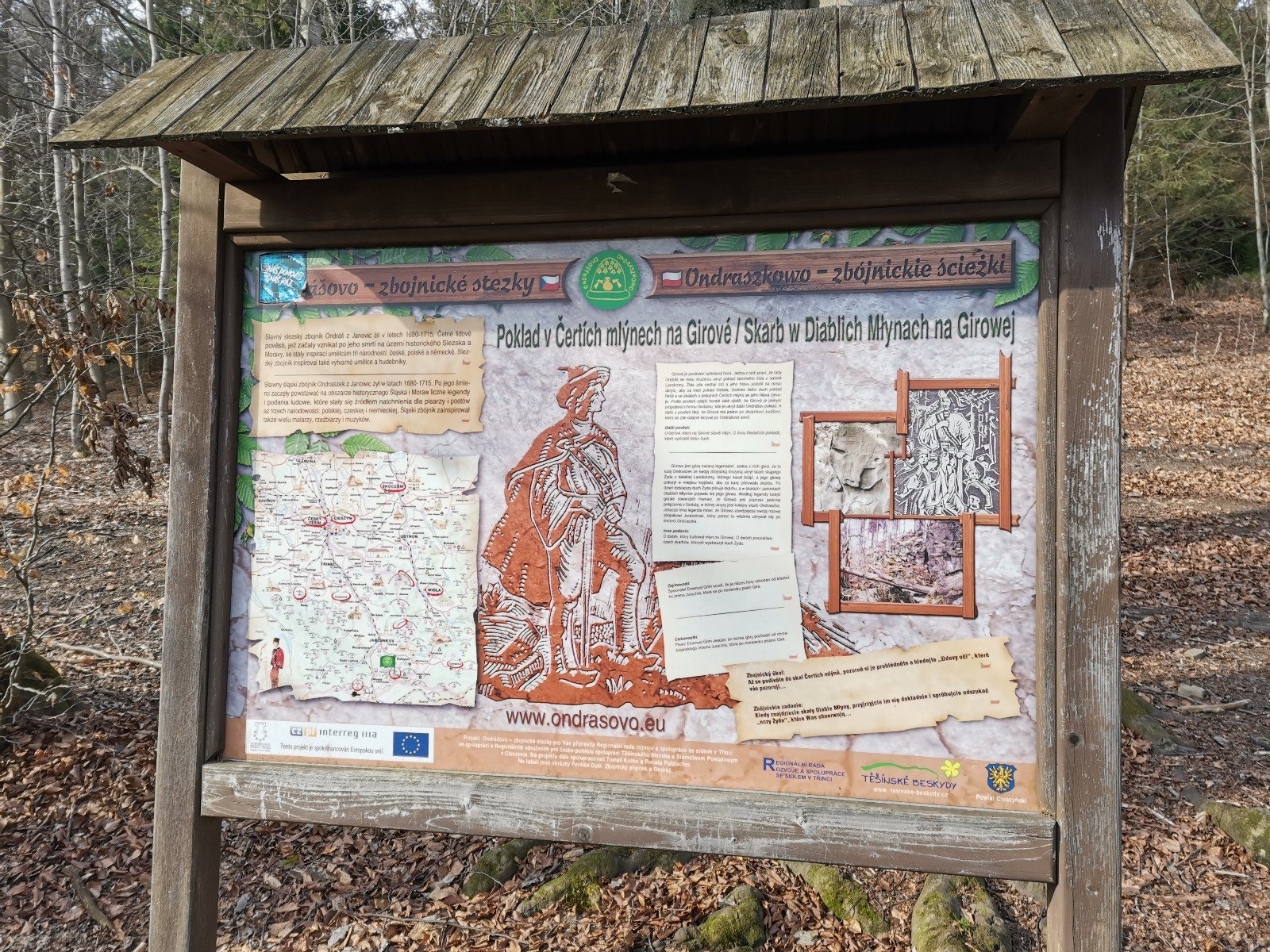 Hrčava > Hospoda U Sikory > neznačenou stezkou > Šance (608 m) > Kozové vršky (627 m) > po hranici > Na potoku > Rozcestník > po červené > Památník posledního vlka v Beskydech > neznačenou stezkou > Na Dílech (701 m) > po žluté > Na Dílku > po zelené > Soušský vrch (618 m) > zpět > Přístřešek Na Dílku > Zvonička > po žluté > Komorovský grúň - osada > po červené > Komorovský Grúň (733 m) > Girová (840 m) > Čertovy mlýny > chata Gírová > po červené > Štipionka > Studeničný (717 m) > chata Studeničný > Fojtský grúň (676 m) > po sjezdovce > Mosty u Jablunkova