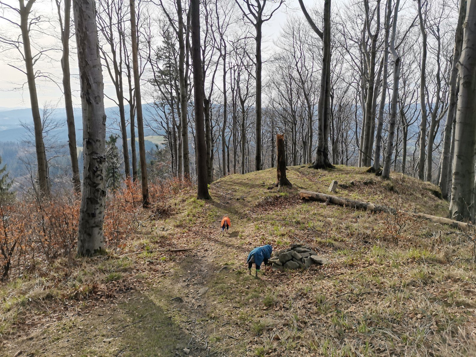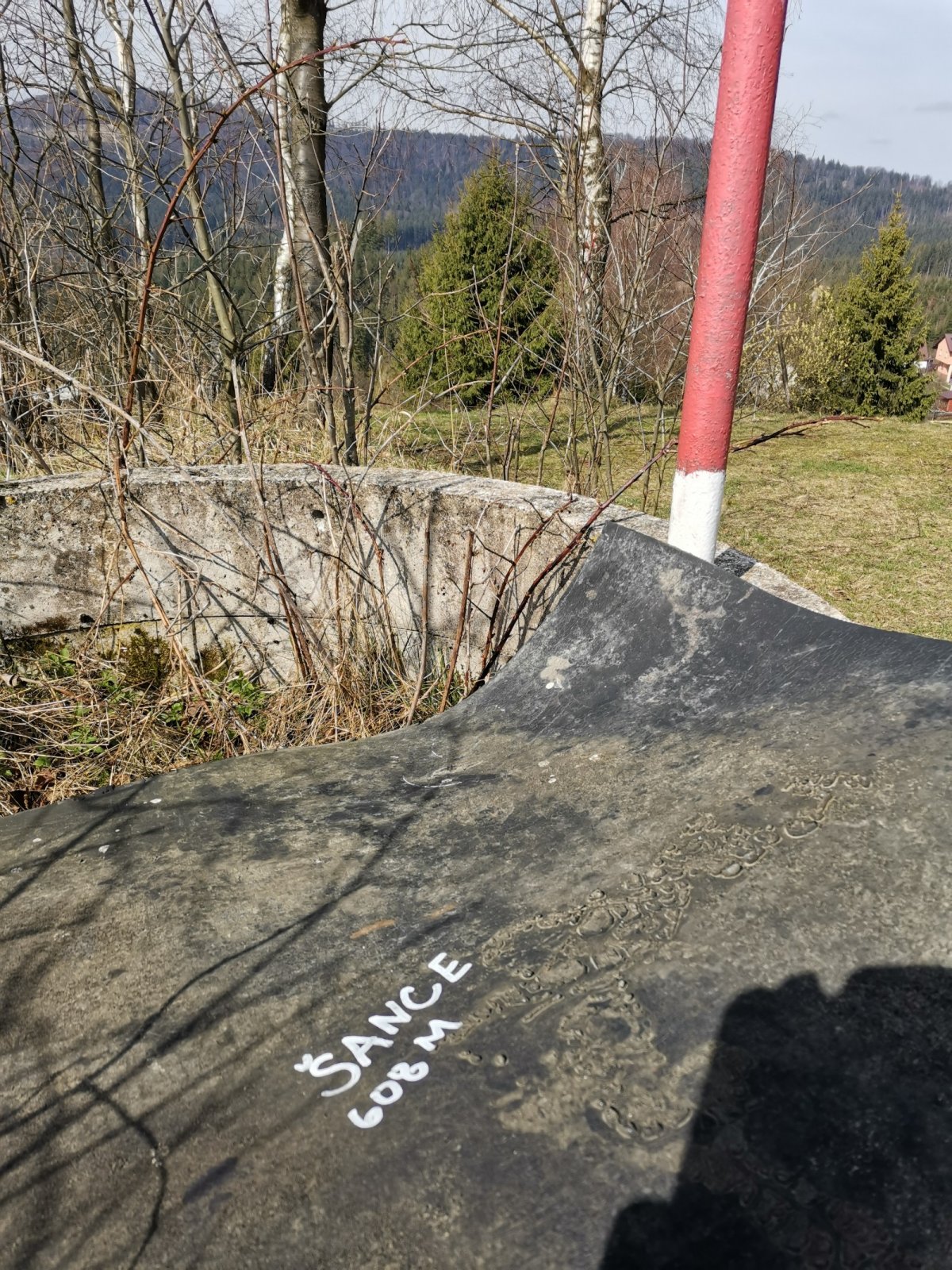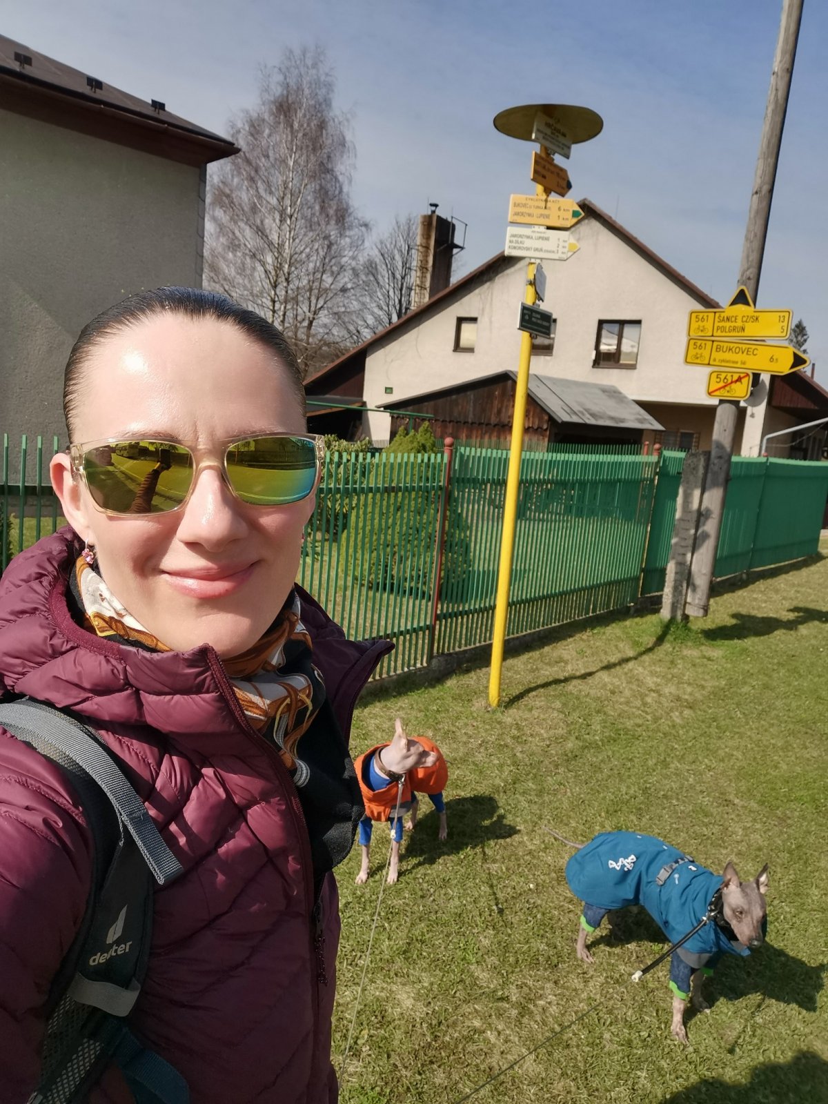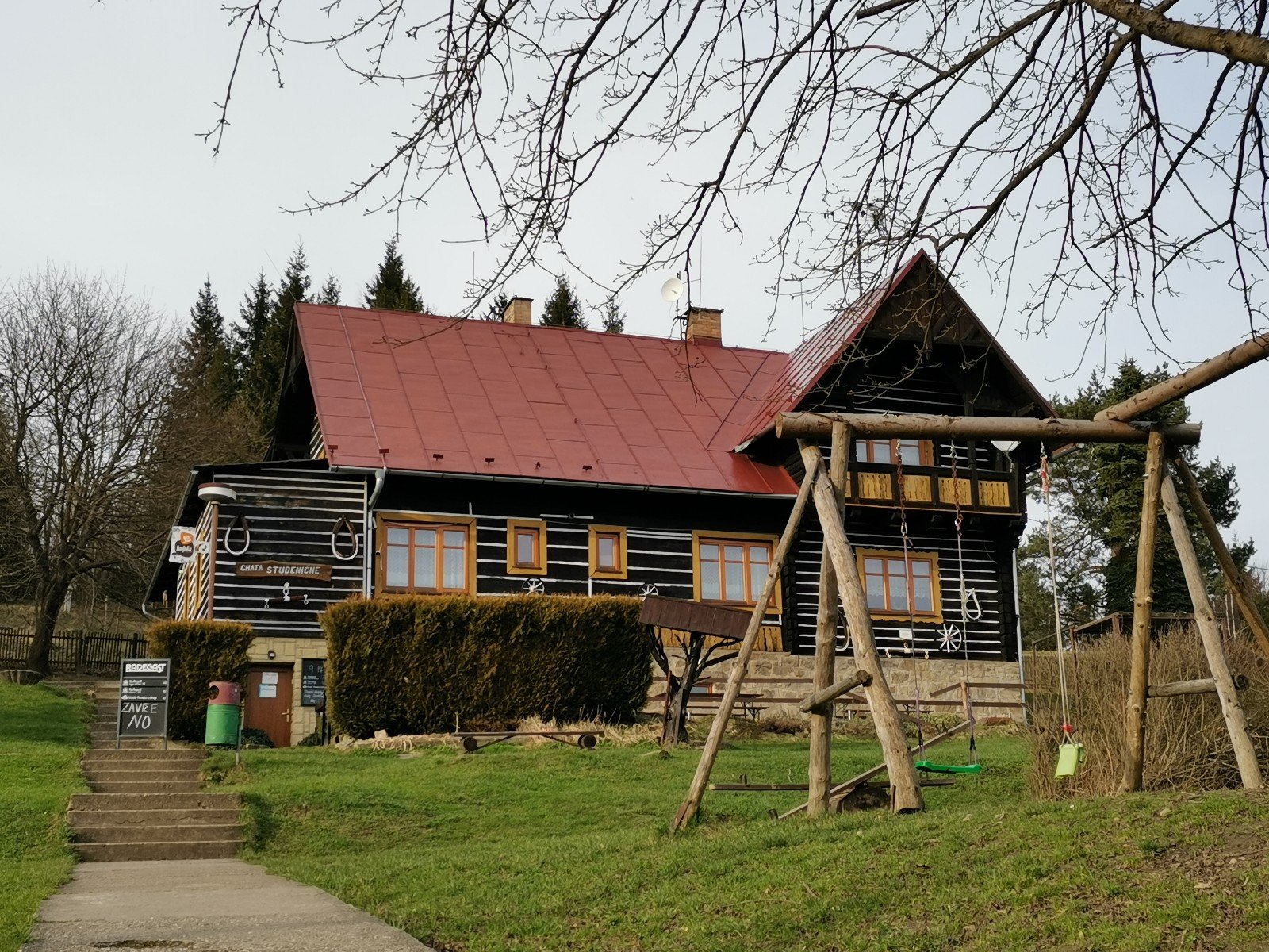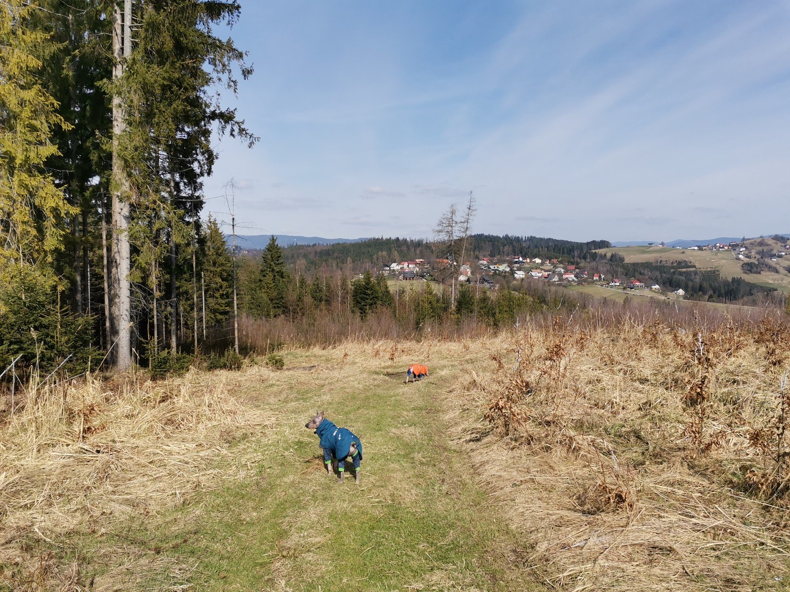 Hrčava > Hospoda U Sikory > neznačenou stezkou > Šance (608 m) > Kozové vršky (627 m) > po hranici > Na potoku > Rozcestník > po červené > Památník posledního vlka v Beskydech > neznačenou stezkou > Na Dílech (701 m) > po žluté > Na Dílku > po zelené > Soušský vrch (618 m) > zpět > Přístřešek Na Dílku > Zvonička > po žluté > Komorovský grúň - osada > po červené > Komorovský Grúň (733 m) > Girová (840 m) > Čertovy mlýny > chata Gírová > po červené > Štipionka > Studeničný (717 m) > chata Studeničný > Fojtský grúň (676 m) > po sjezdovce > Mosty u Jablunkova