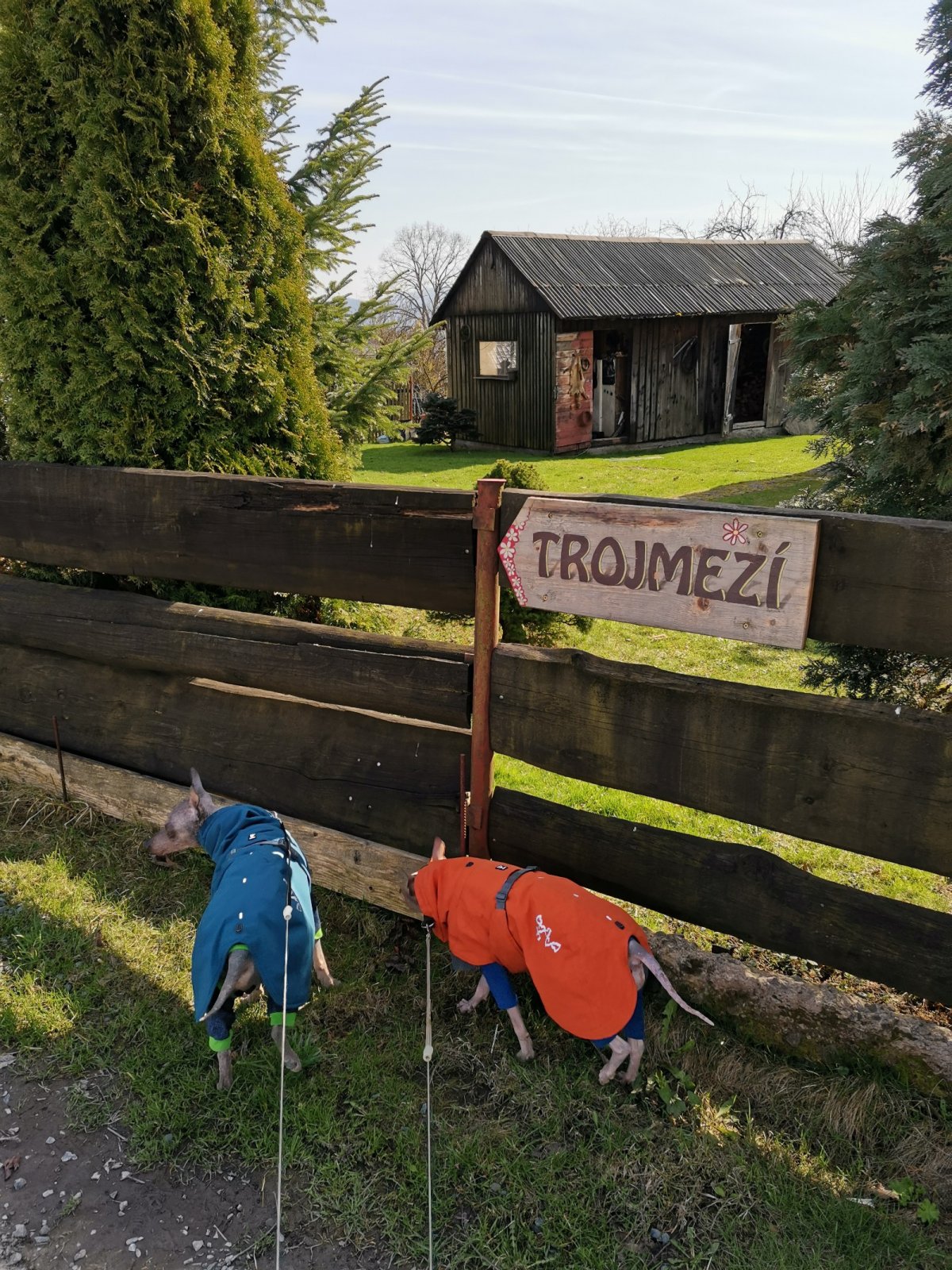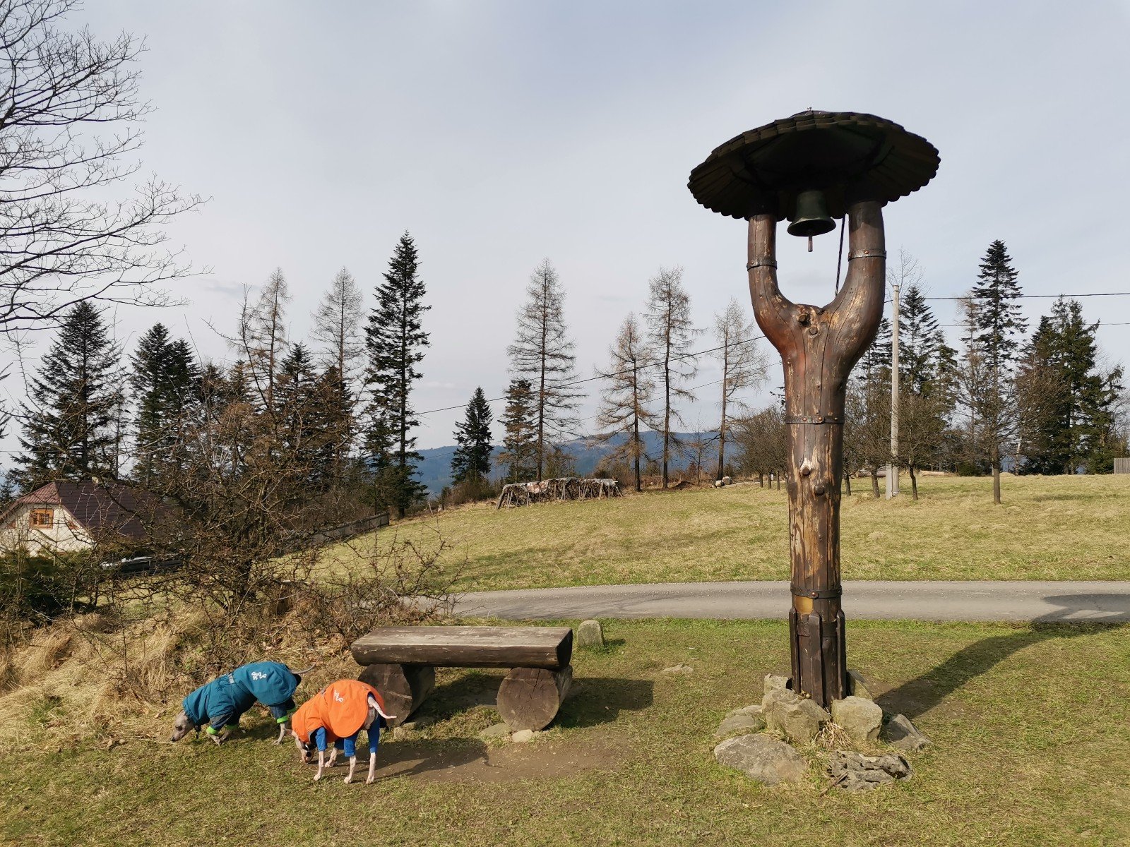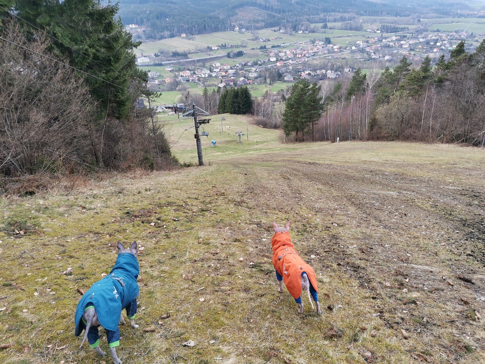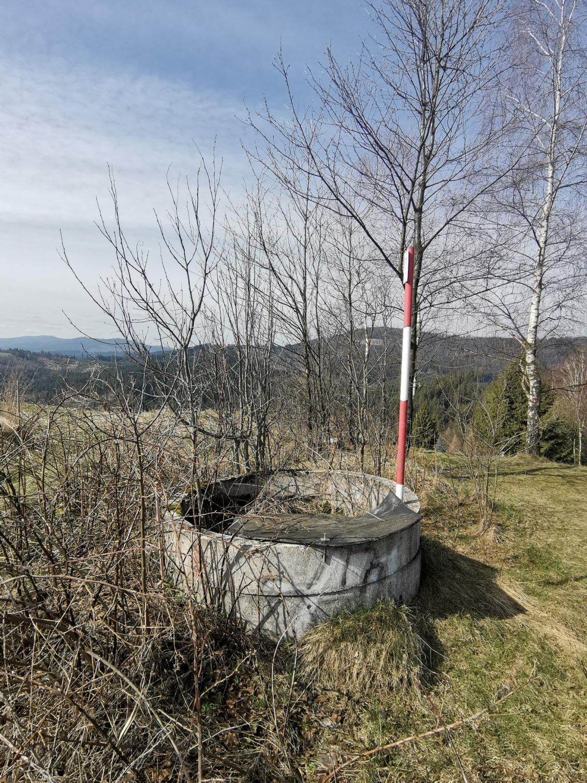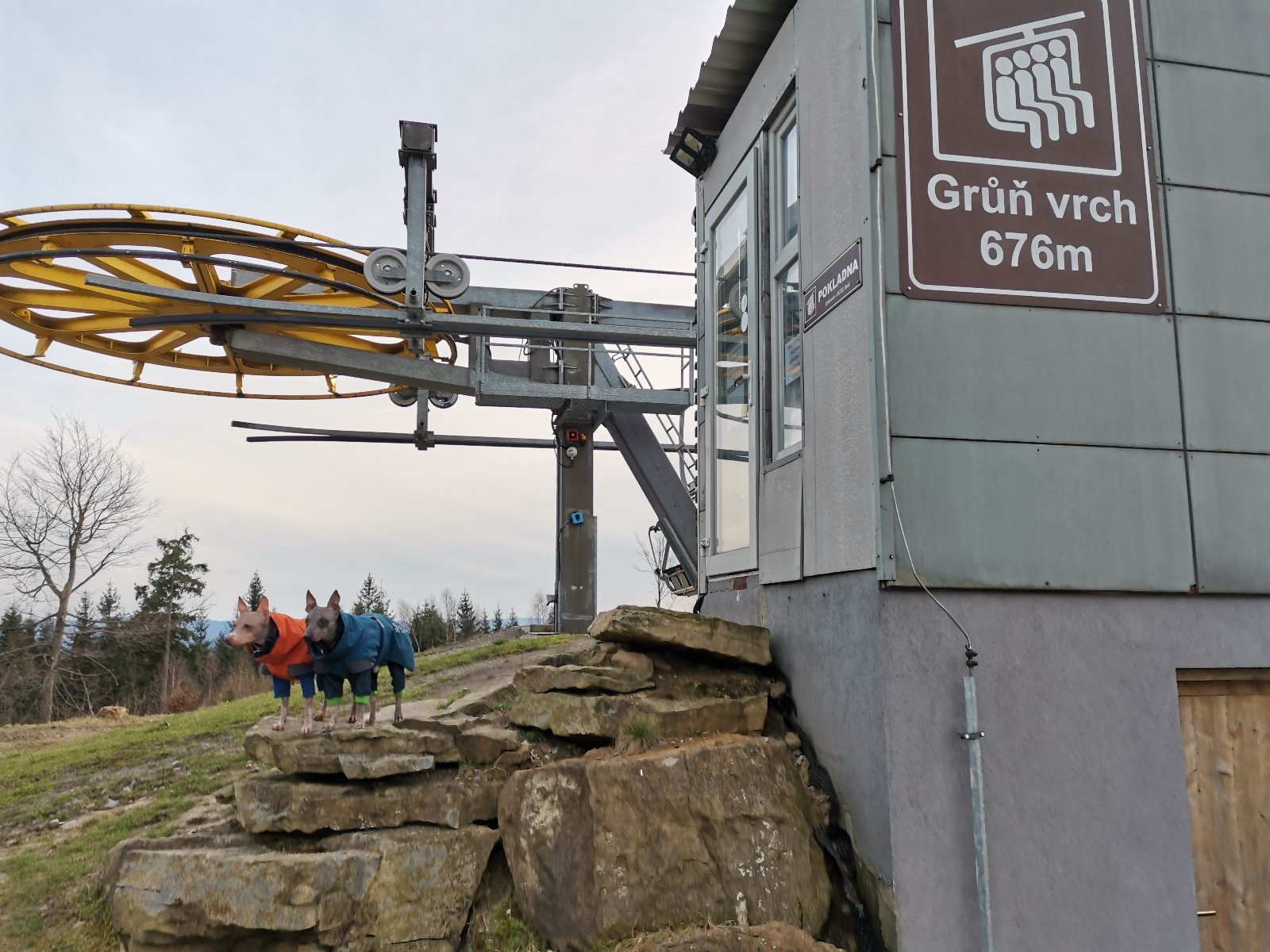 Hrčava > Hospoda U Sikory > neznačenou stezkou > Šance (608 m) > Kozové vršky (627 m) > po hranici > Na potoku > Rozcestník > po červené > Památník posledního vlka v Beskydech > neznačenou stezkou > Na Dílech (701 m) > po žluté > Na Dílku > po zelené > Soušský vrch (618 m) > zpět > Přístřešek Na Dílku > Zvonička > po žluté > Komorovský grúň - osada > po červené > Komorovský Grúň (733 m) > Girová (840 m) > Čertovy mlýny > chata Gírová > po červené > Štipionka > Studeničný (717 m) > chata Studeničný > Fojtský grúň (676 m) > po sjezdovce > Mosty u Jablunkova