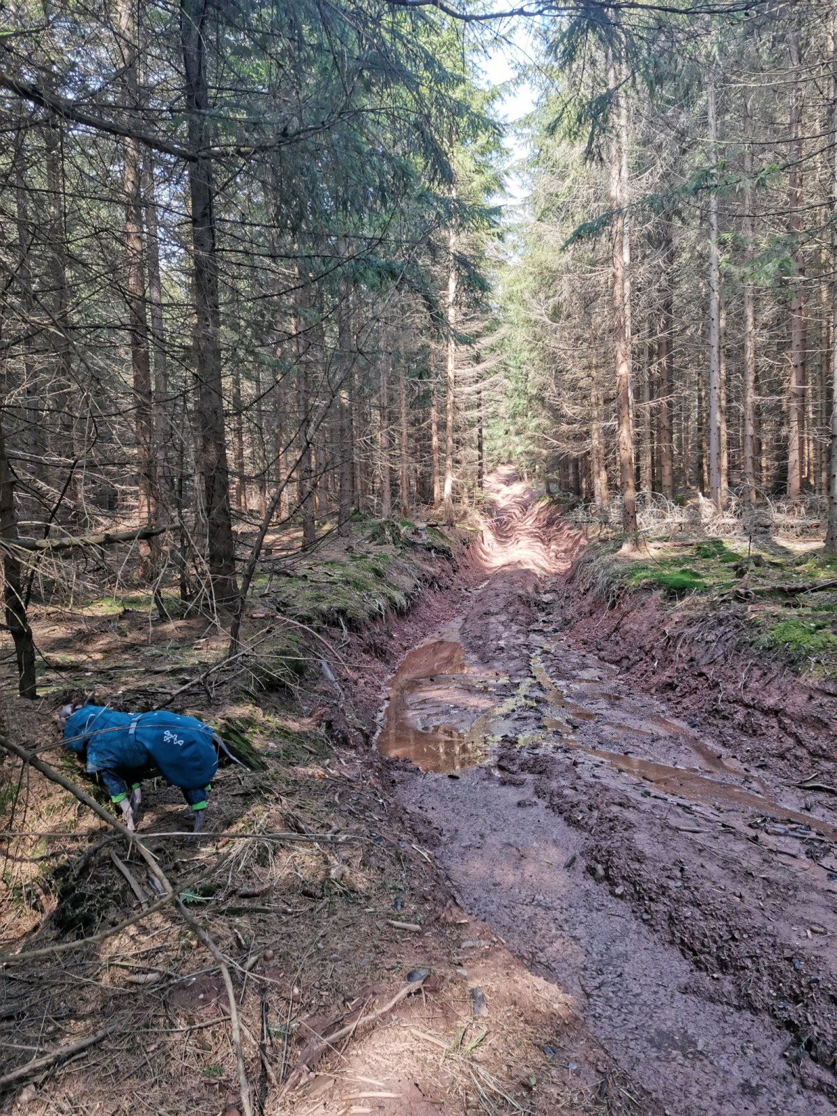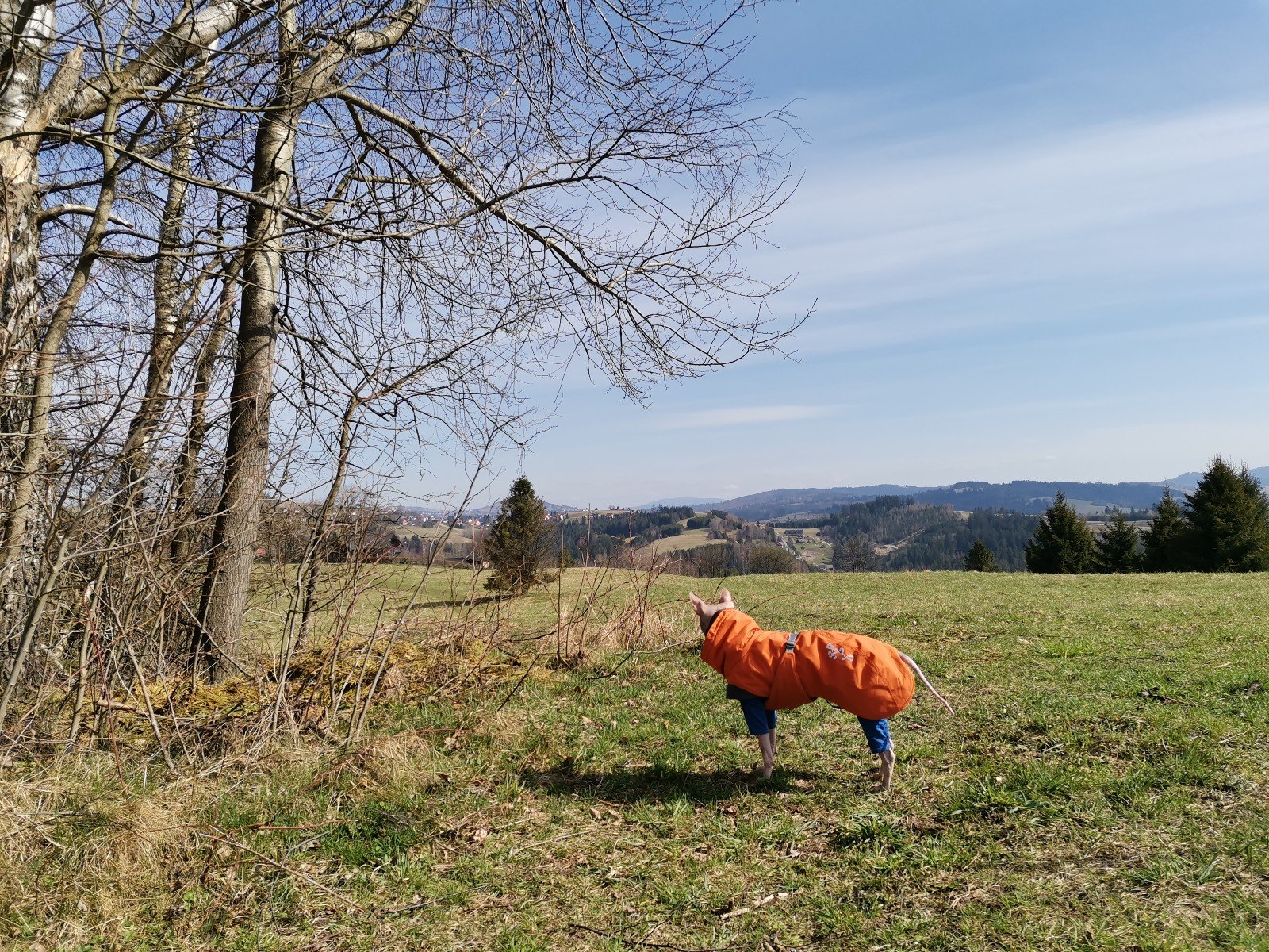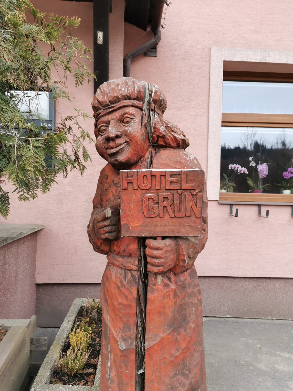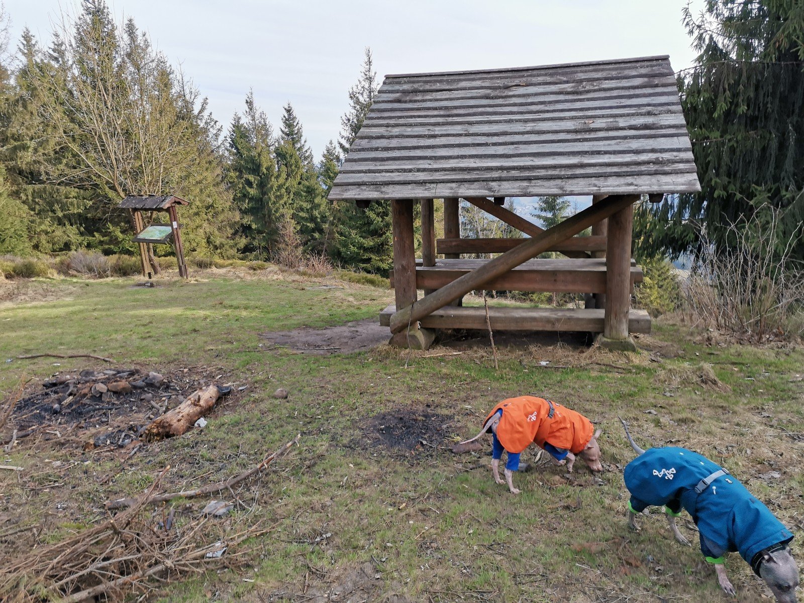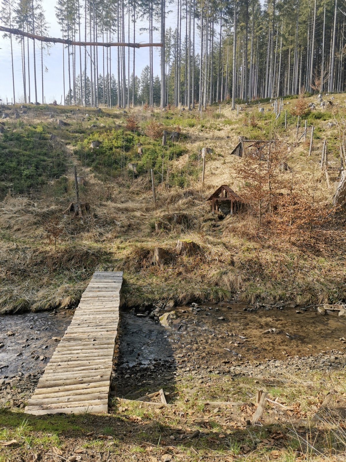 Hrčava > Hospoda U Sikory > neznačenou stezkou > Šance (608 m) > Kozové vršky (627 m) > po hranici > Na potoku > Rozcestník > po červené > Památník posledního vlka v Beskydech > neznačenou stezkou > Na Dílech (701 m) > po žluté > Na Dílku > po zelené > Soušský vrch (618 m) > zpět > Přístřešek Na Dílku > Zvonička > po žluté > Komorovský grúň - osada > po červené > Komorovský Grúň (733 m) > Girová (840 m) > Čertovy mlýny > chata Gírová > po červené > Štipionka > Studeničný (717 m) > chata Studeničný > Fojtský grúň (676 m) > po sjezdovce > Mosty u Jablunkova