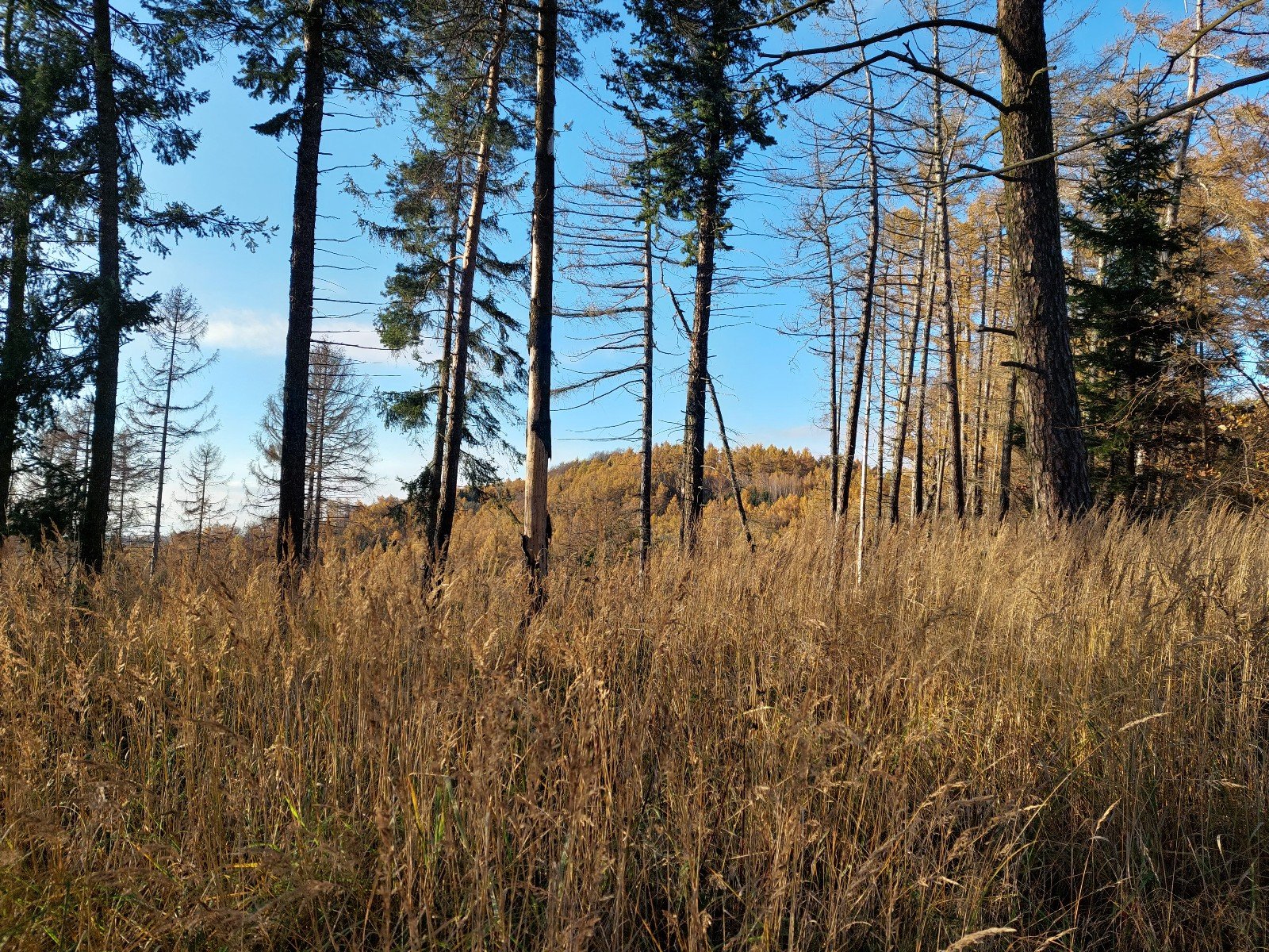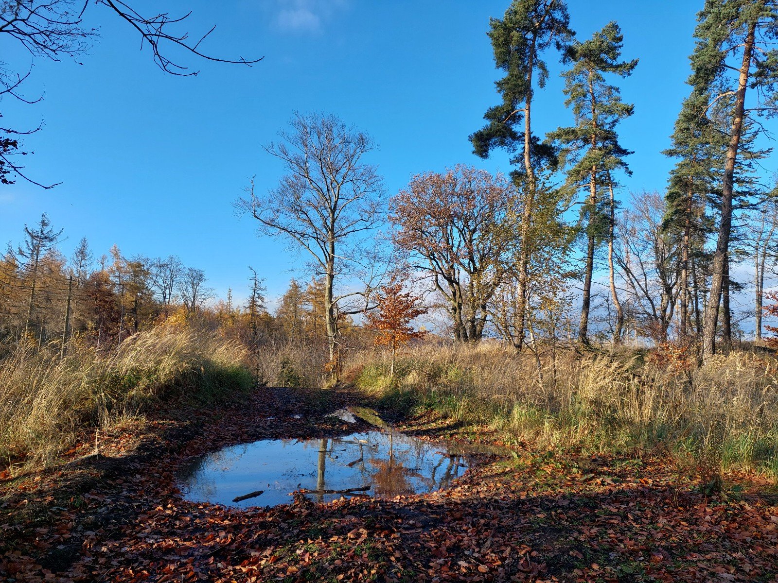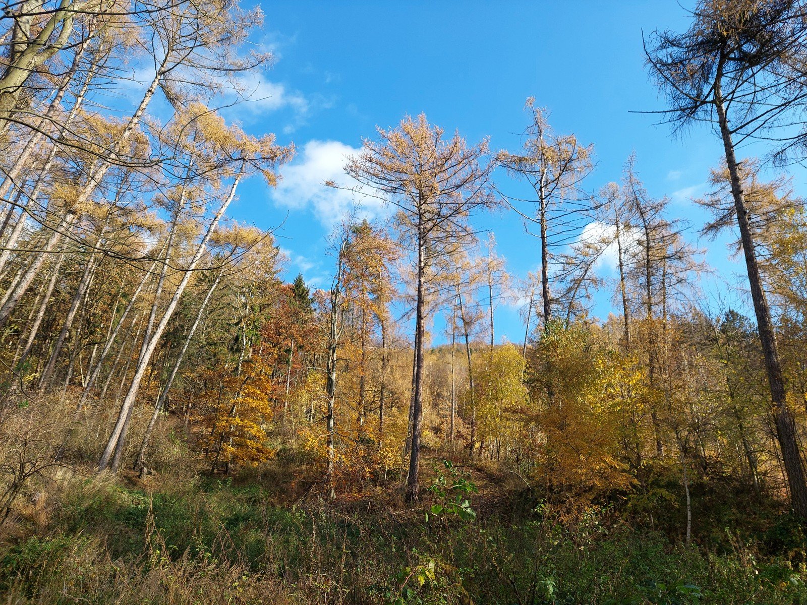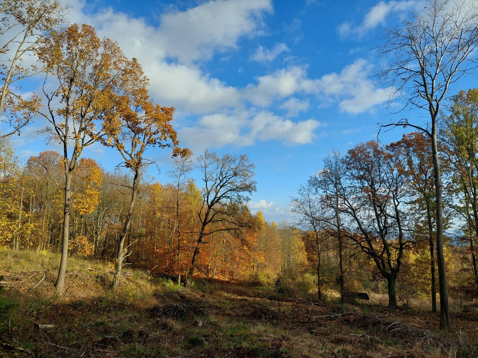 Ze Skalice po modré na Křížovou horu, poté na Dlouhý vrch, po žluté a červené zpět.