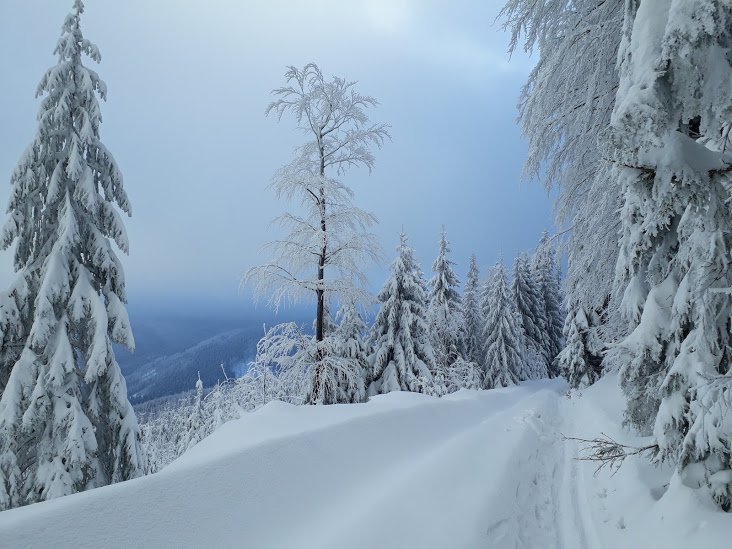 Přejezd na běžkách z Javorového přes Ostrý do Týry.