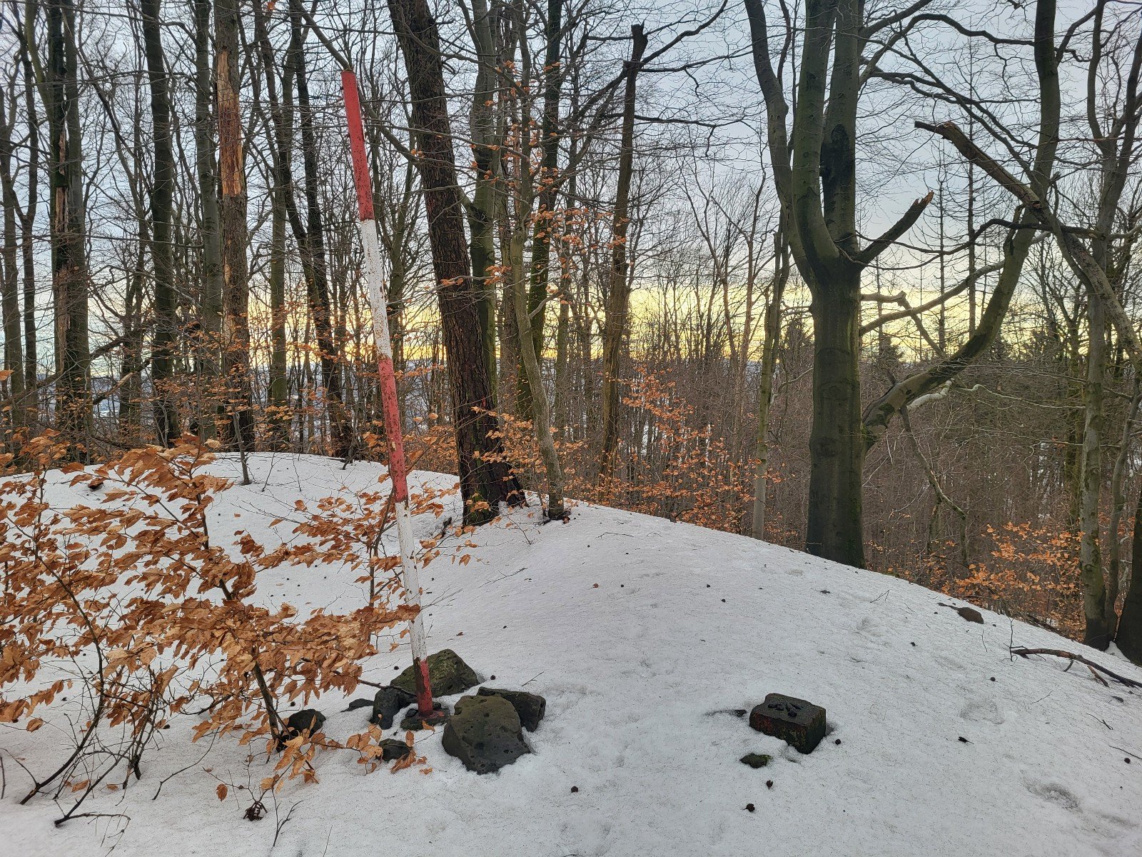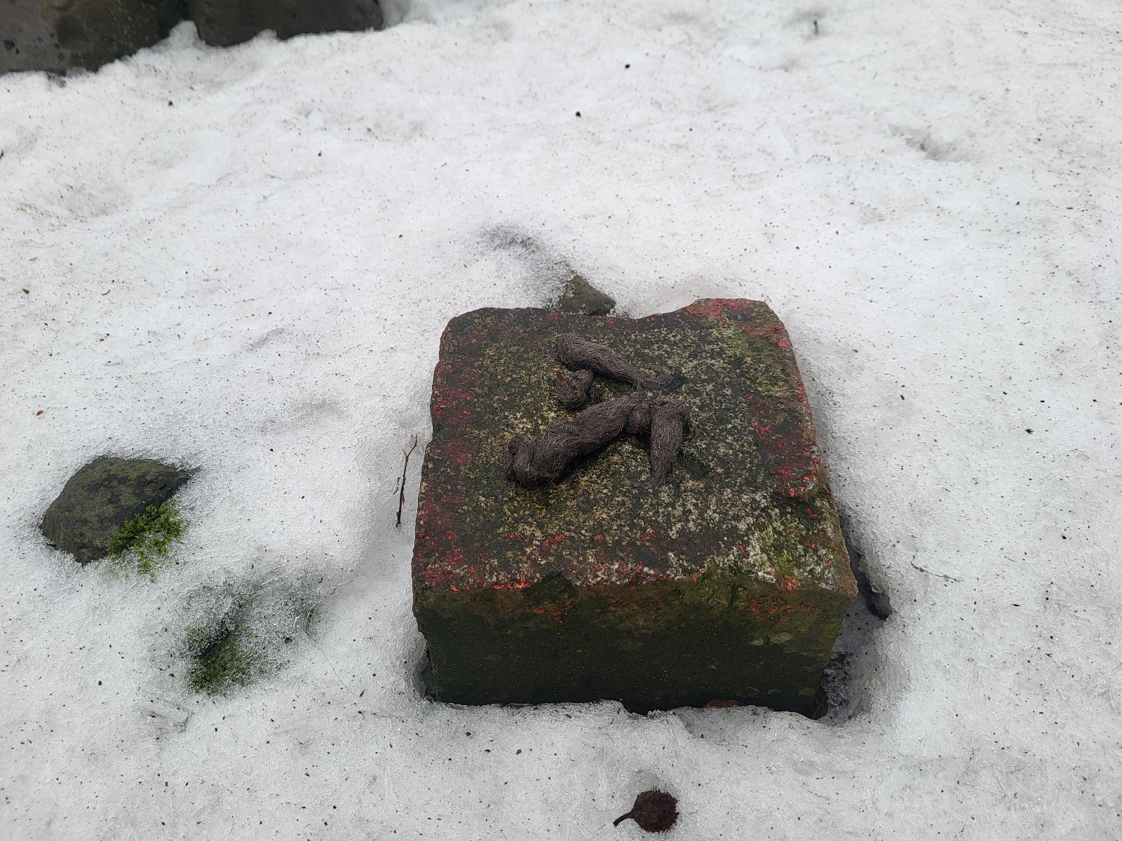 Ve vrstvě 10-15 cm rozbředlého sněhu jsem za chvilku cítil v botách jistý nekomfort. To "nadělení" na vrcholovém kameni (viz. foto) je na 99 % od vlka o čemž mě ujistili i stopy ve sněhu, které bohužel díky oblevě nejsou moc výrazné.