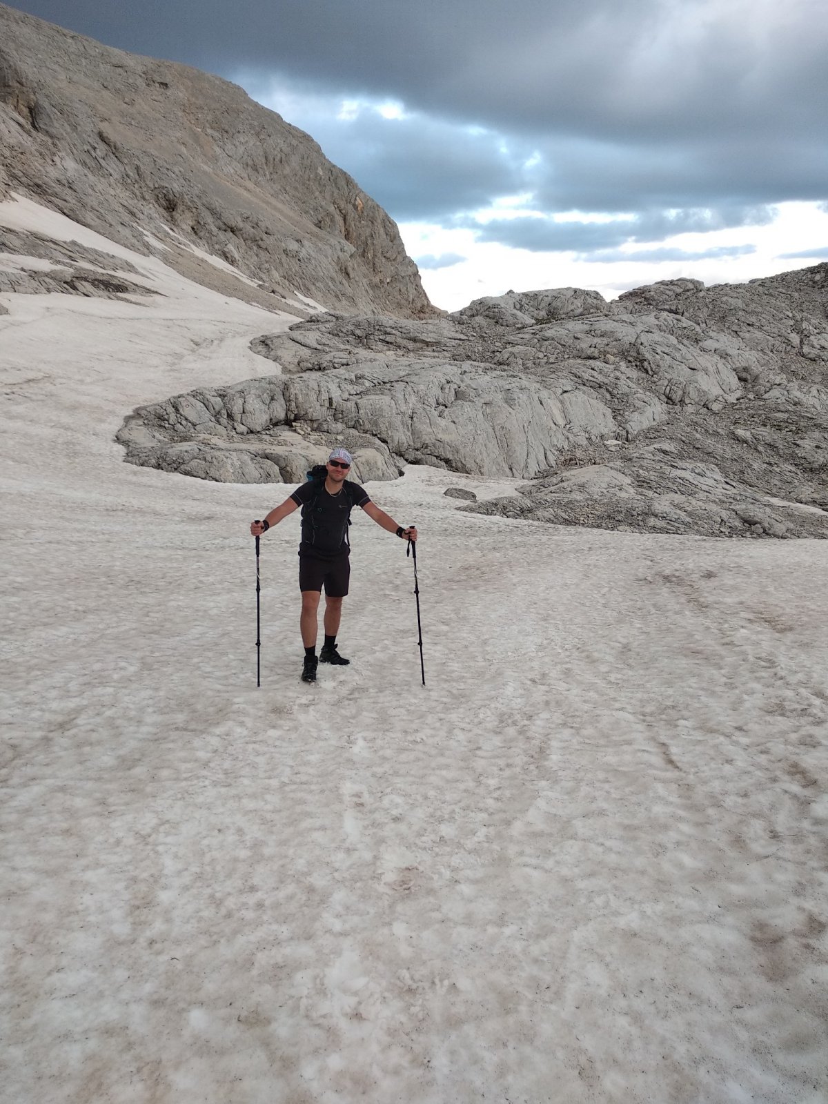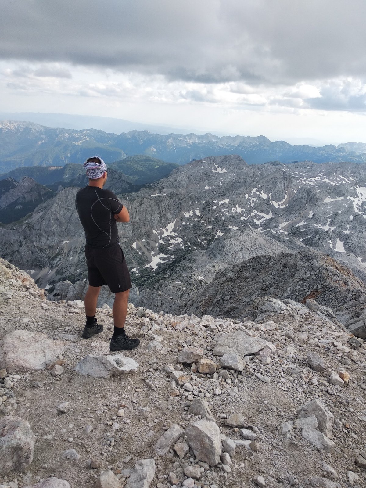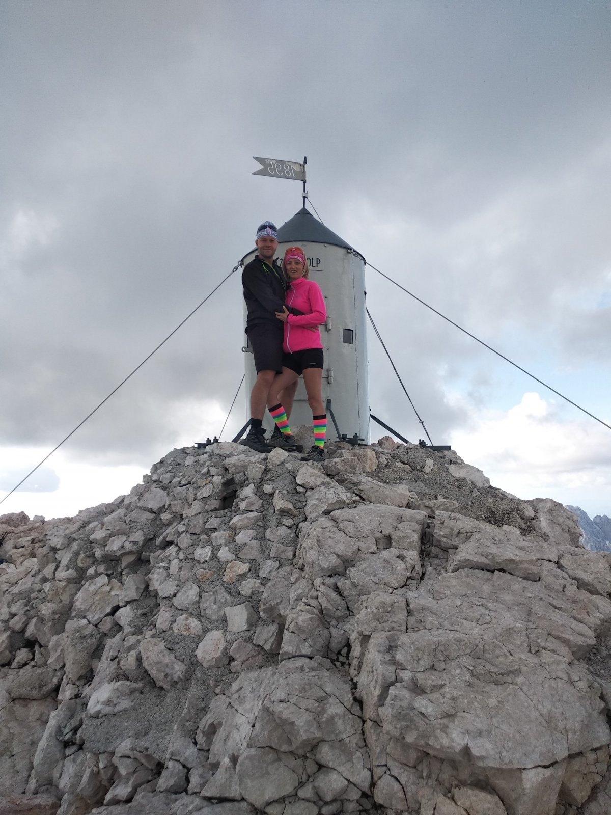 Já a Monča a Maťo s Evou. Já a Monča jsme šli z Runo Polje až na vrchol. Vycházeli jsme kolem půl desáté. Maťo s Evou se odpojili u chaty Vodnikov dom. Na vrcholu jsme byli asi kolem půl šesté. Bylo to docela náročné, ale dali jsme to ;). Monča šikovná :).