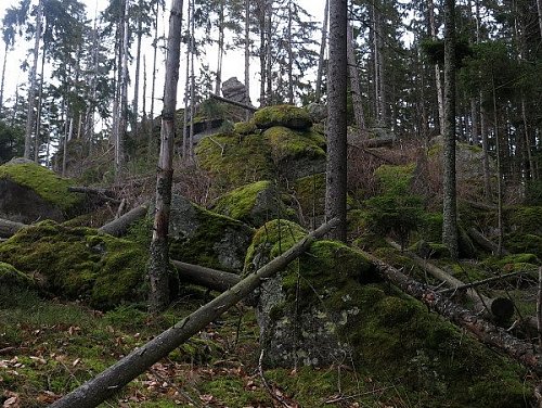 Jeden ze tří vrcholů v rozsáhlém polesí Slunečné.