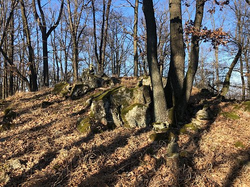 Na vrcholu malá skalka s mužikem. Dostupnost bez komplikací.
