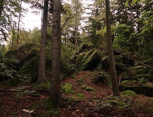 Ve vrcholové oblasti řídký les a řada skalních útvarů.