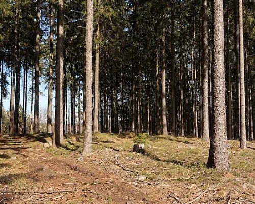Jeden z vedlejších vrcholů Převážení. Zalesněno, nedaleko vrcholu částečný výhled.