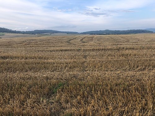 Plochý vrchol v poli, ale s krásným kruhovým rozhledem.