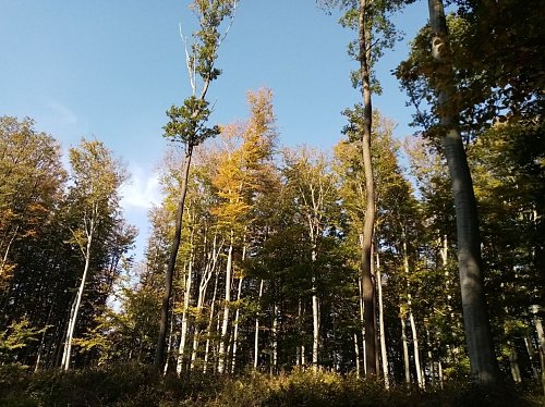 Vrchol není označen a leží ve vzrostlém listnatém lese.