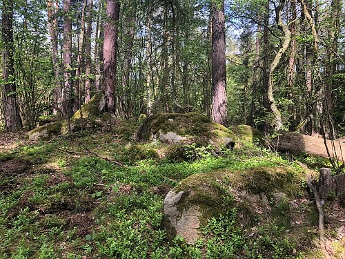 Pár balvanů na vrcholku, krásná okolní krajina.