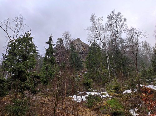 Též Čertovy skály, na vrcholu zděná vyhlídka, na kterou vedou schody.