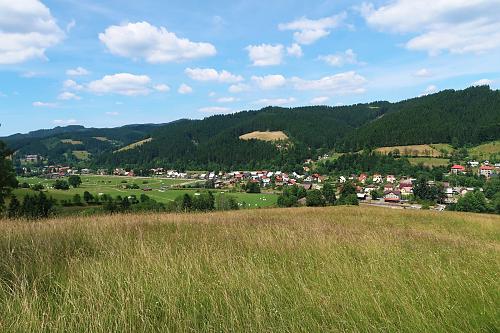 Kyčera (746 m), nevýrazný vrchol na svazích nad Velkými Karlovicemi, od železniční stanice po žluté turistické značce vystoupáme na vrcholovou louku a pak na samotný vrchol Kyčery. Je odsud pěkný výhled na protější hřbety.