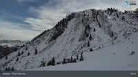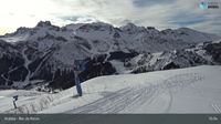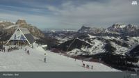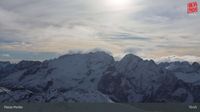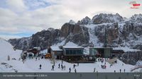 lanovka ze sedla Pordoi do výšky cca 2800 m, pak ještě asi 2 km mírným stoupáním na vrchol k chatě